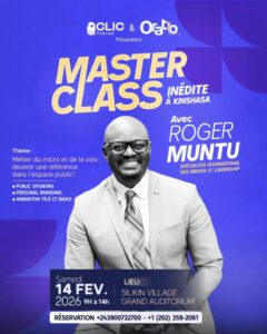 La Masterclass de Roger Muntu, spécialiste international des médias et leadership réunira, le samedi 14 février 2026, les professionnels des médias, au Grand Auditorium du Silikin Village.