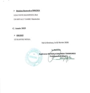 Plus de 100 (cent) engagements du personnel jugés irréguliers ont été annulés par la rectrice de l’Université des sciences de l’information et de la communication (UNISIC). La décision, rendue publique ce vendredi 6 février 2026, concerne le retrait de toutes les décisions d’engagement prises entre 2022 et 2025.